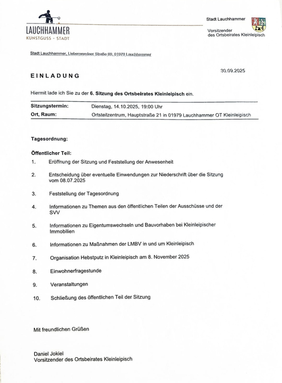 Öffentliche Ortsbeiratssitzung Kleinleipisch